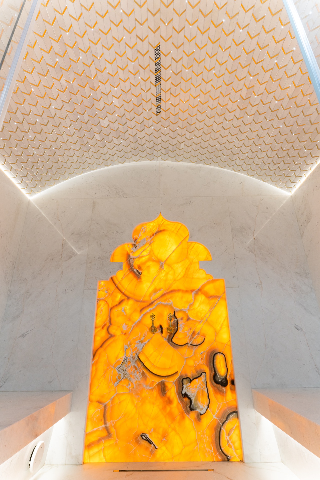 Потолок формы свод, отделан мозаикой.